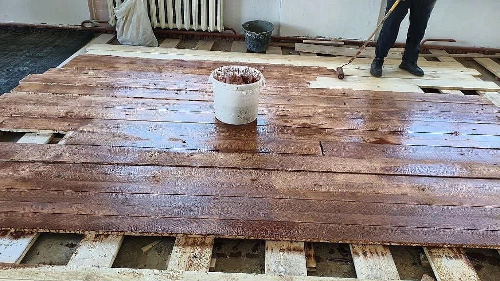 Внутри здания планируется разобрать покрытия полов и металлические лестничные решётки, заменить пол, покрасить стены, заменить двери и поклеить новые обои. Косметический ремонт здесь делали около 20 лет назад.